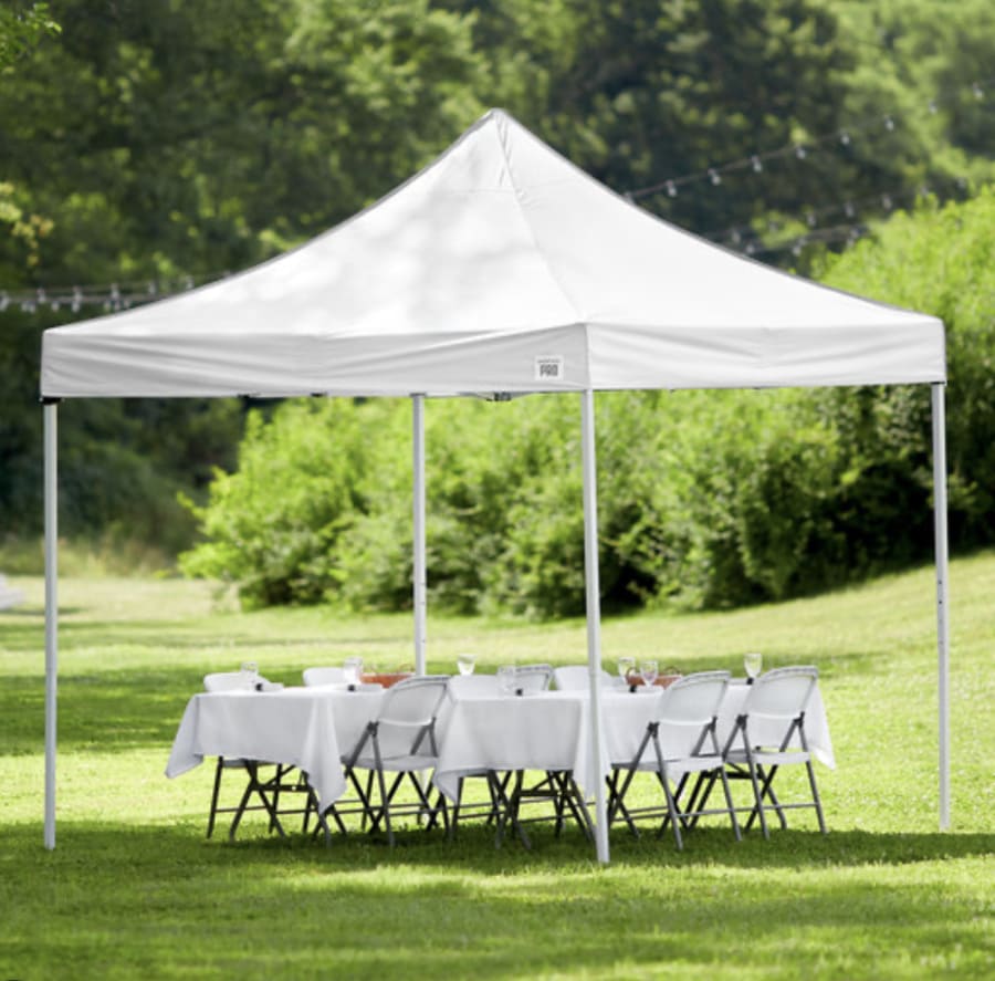 Rent the 10x10 Pop-up Tent for your next celebration or get-together. This white 10x10 pop-up tent delivers instant shelter, a professional look, and easy setup. One person can assemble it in minutes. The sturdy frame and water-resistant canopy keep guests dry and shaded. Ideal for backyard parties, vendor booths, and small outdoor ceremonies. Tables and chairs are available at an additional cost. 🎉